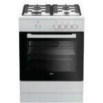 Cucina a gas da installazione libera con forno a gas. Il piano cottura è dotato di un sistema di sicurezza per il gas e presenta 4 bruciatori. La potenza del bruciatore anteriore sinistro è di 2,9 kW, quella del bruciatore posteriore sinistro è di 2 kW, il bruciatore anteriore destro ha una potenza di 1 kW e il bruciatore posteriore destro arriva a 2 kW. Il forno è controllato meccanicamente e sia il sistema di cottura che il grill funzionano a gas. La capacità della cavità del forno è di 64 litri. La finitura della porta, sia esterna che interna, è in vetro. Il forno ha un’efficienza energetica di classe A. Le dimensioni sono: altezza 85 cm, larghezza 60 cm e profondità 60 cm. Il colore è bianco e include un coperchio in vetro.